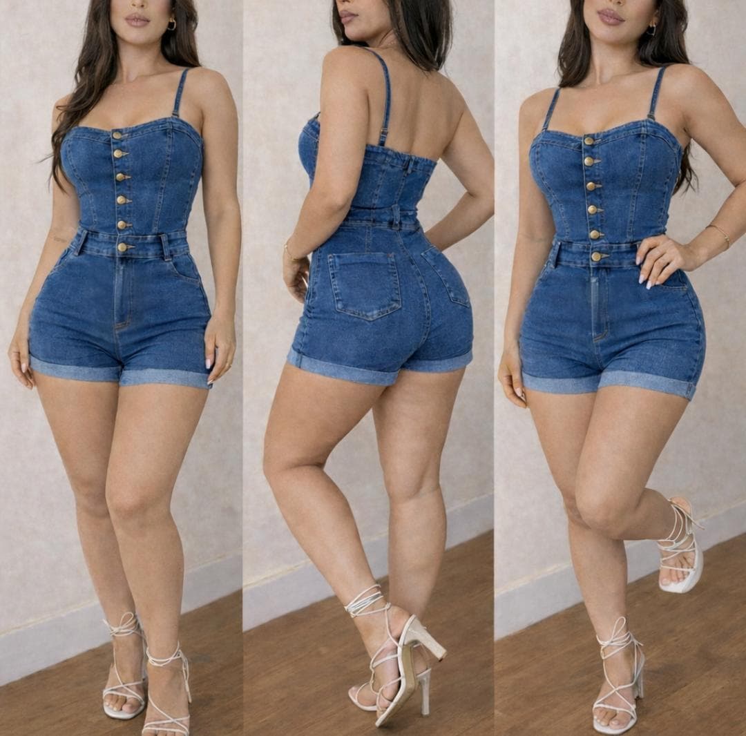 Macaquinho Jeans Botões Delave